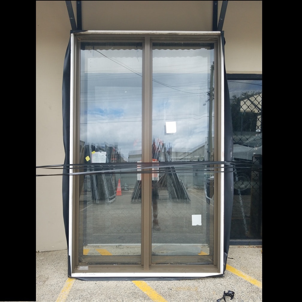 For sale is one 2400mm high by 1490mm wide Anodic Bronze Satin (powdercoated) aluminium fixed window with clear glass 98mm timber reveal. This window consists of two fixed panels of glass situated side by side. Fixed windows do not open. Factory seconds are usually just cancelled orders but may have some minor marks from handling; as such, we recommend inspection prior to purchase.