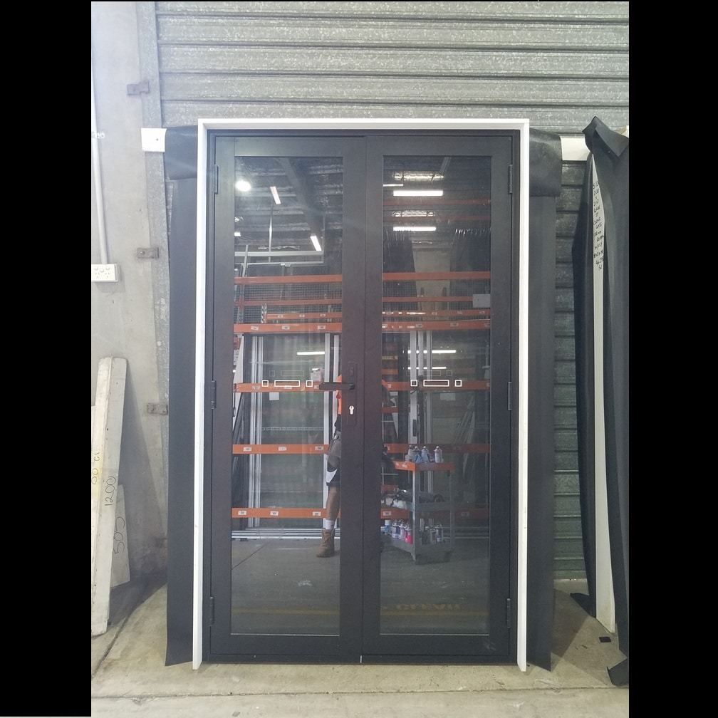 For sale is one 2100mm high by 1240mm wide Black (powdercoated) aluminium french door with clear glass, 116mm timber reveal and a key. This door has stainless steel view screens to suit. Both panels of this door will swing open to the interior. Due to how this door opens it is recommended for use in a protected (undercover) situation only. This is a cancelled order and has been priced accordingly. Cancelled orders are new product which have been cancelled by a customer; they may have some minor marks from handling; as such, we recommend inspection prior to purchase. As this is a brand new product, it will come with a form 15 (glazing certificate) and full manufacturer’s warranty.