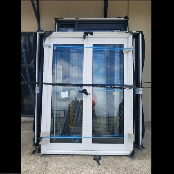 For sale is one 2100mm high by 1510mm wide Textura White (powdercoated) aluminium french door with clear glass, 98mm timber reveal and a key. Both panels of this door will swing open to the exterior. This is a factory second product and has been priced accordingly. Factory seconds are usually just cancelled orders but may have some minor marks from handling; as such, we recommend inspection prior to purchase.