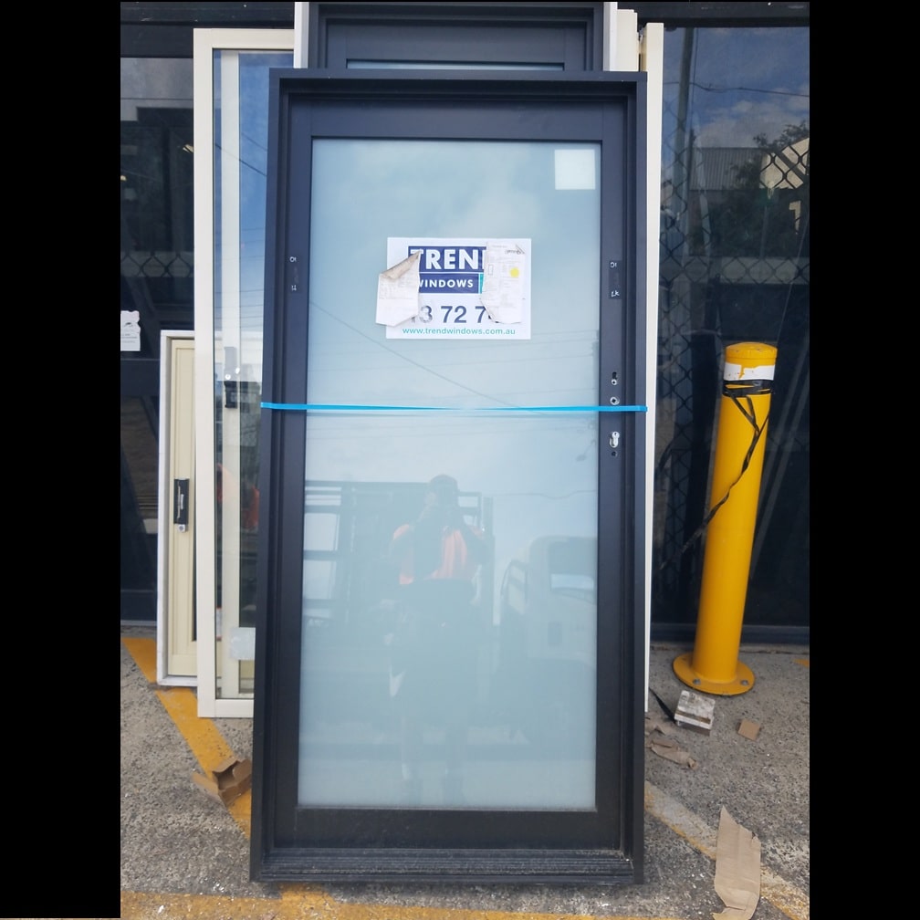 For sale is one 1895mm high by 900mm wide Black (powdercoated) aluminium hinged door with obscure (frosted) glass. Unfortunately there is handle to suit this door. The frame has been definned and measures 102mm deep. When viewed from the outside, looking in this door would be hinged on the right and swing open to the exterior. This is a factory second product and has been priced accordingly. Factory seconds are usually just cancelled orders but may have some minor marks from handling; as such, we recommend inspection prior to purchase.