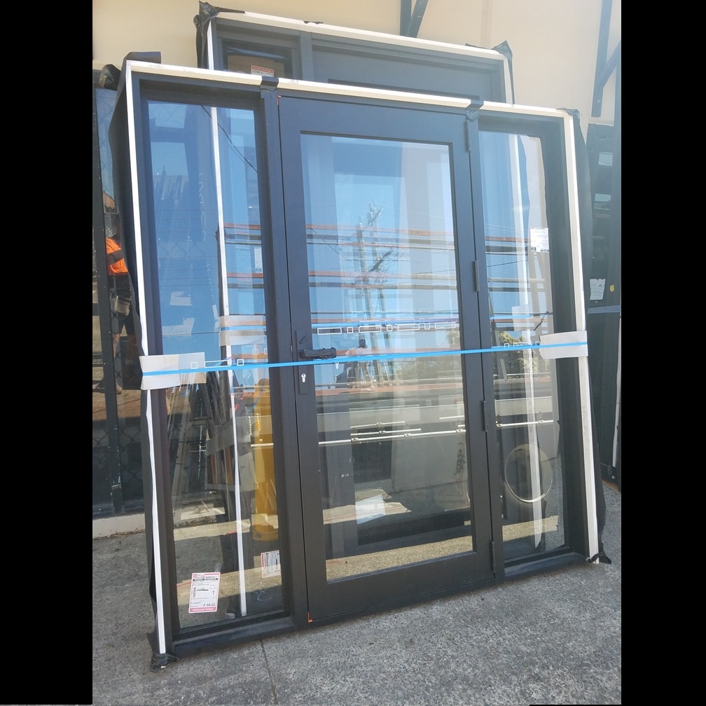 For sale is one 2100mm high by 1900mm wide Black (powdercoated) aluminium hinged door with clear glass, 98mm timber reveal and a key. When viewed from the outside, looking in this door would be hinged on the left and swing open to the interior. With fixed panels on both sides of the door (fix panels do not open). Due to how this door opens it is recommended for use in a protected (undercover) situation only. This is a factory second product and has been priced accordingly. Factory seconds are usually just cancelled orders but may have some minor marks from handling; as such, we recommend inspection prior to purchase.