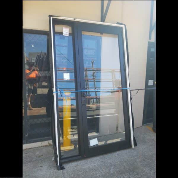 For sale is one 2400mm high by 1400mm wide Black (powdercoated) aluminium hinged door with clear glass, 98mm timber reveal and a key. When viewed from the outside, looking in this door would be hinged on the left and swing open to the interior. Due to how this door opens it is recommended for use in a protected (undercover) situation only. With a fixed panel on the right (fixed panels do not open). This is a factory second product and has been priced accordingly. Factory seconds are usually just cancelled orders but may have some minor marks from handling; as such, we recommend inspection prior to purchase.