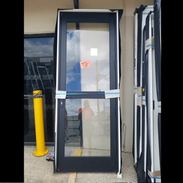 Hinged Door – 2400h x 890w Black w/ Clear Glass *Factory 2nd* 46263