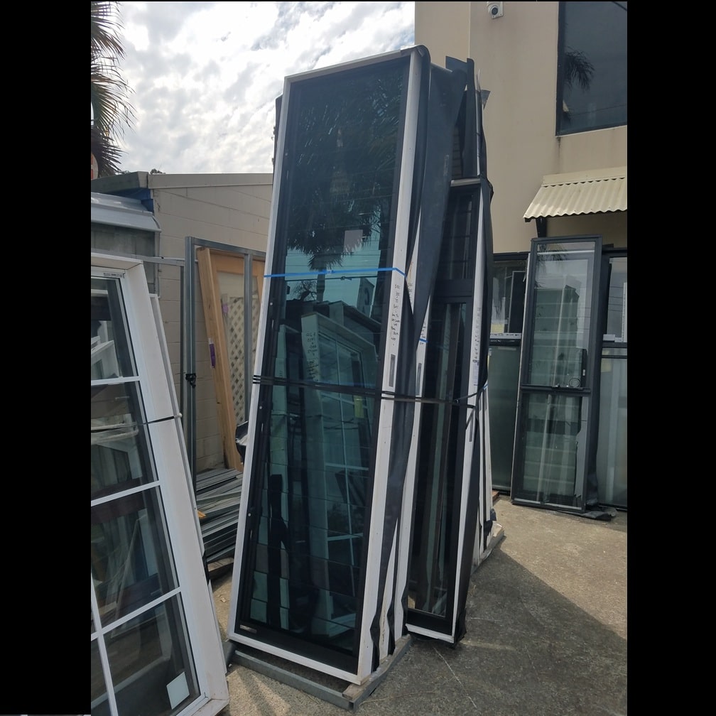 For sale is one 3000mm high by 750mm wide Black (powdercoated) aluminium louvre window with 152mm grey sunergy glass louvre blades, 98mm timber reveal and a key. This is a factory second product and has been priced accordingly. Factory seconds are usually just cancelled orders but may have some minor marks from handling; as such, we recommend inspection prior to purchase.