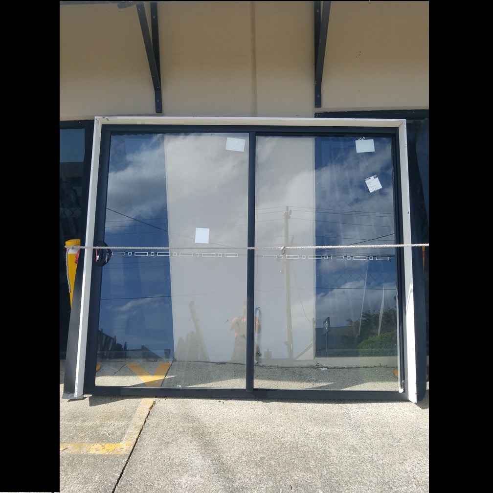For sale is one 2100mm high by 2390mm wide Black (powdercoated) aluminium sliding door with clear glass, 98mm timber reveal and a key. This door has a fly screen to suit. This door has matching hardware. The configuration of this product from the outside, looking in is FS (where F stands for fixed panel and S stands for sliding). This means that when you are on the outside of the building looking in, the left hand panel of glass is fixed and the right panel slides (from the right to the left). This is a cancelled order and has been priced accordingly. Cancelled orders are new product which have been cancelled by a customer; they may have some minor marks from handling; as such, we recommend inspection prior to purchase.