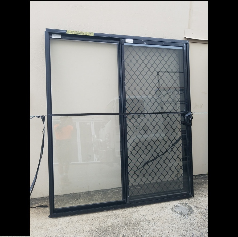 Sliding Door with Diamond Grill Screen – 2100h x 1810w Black w/ Clear Glass *NEW* 46249