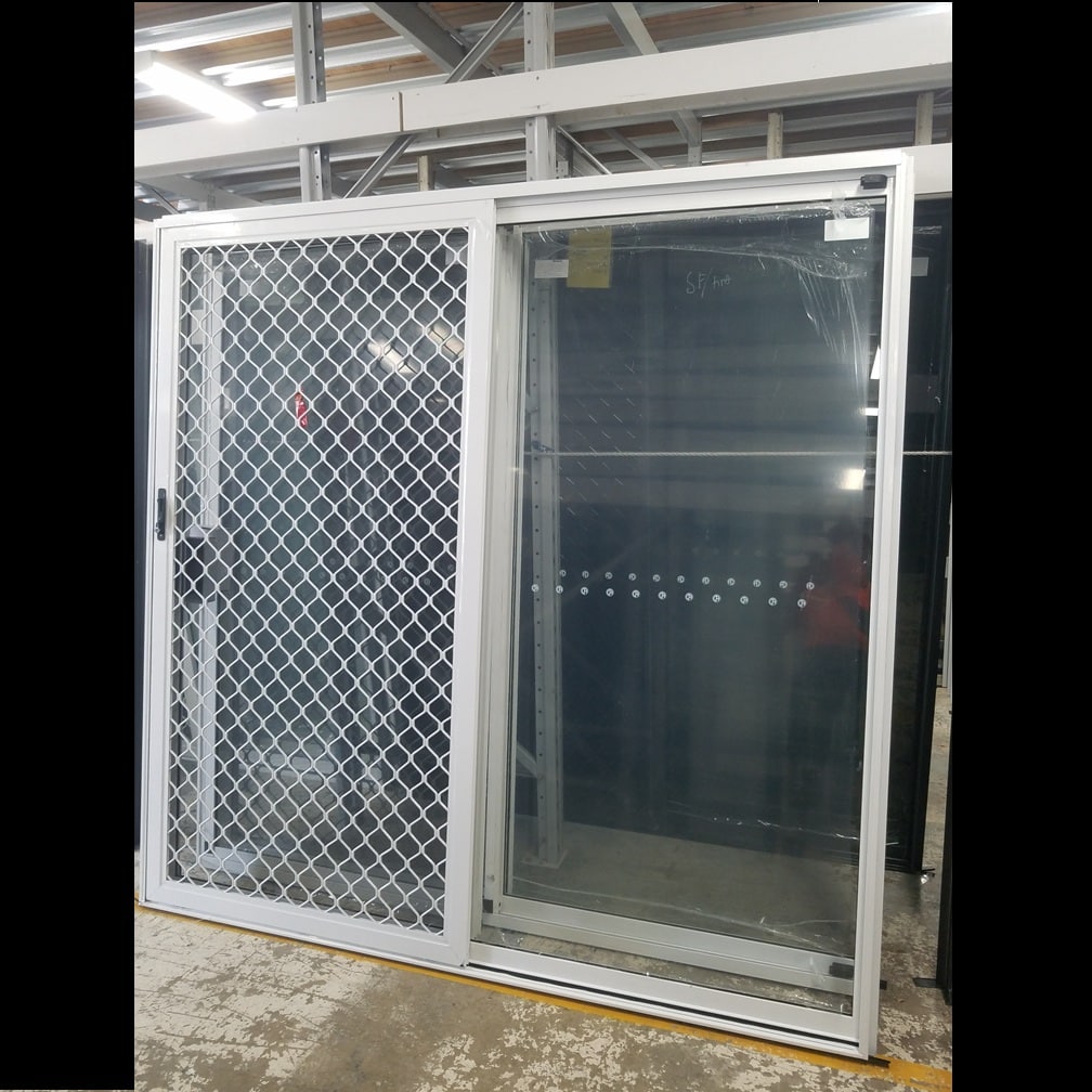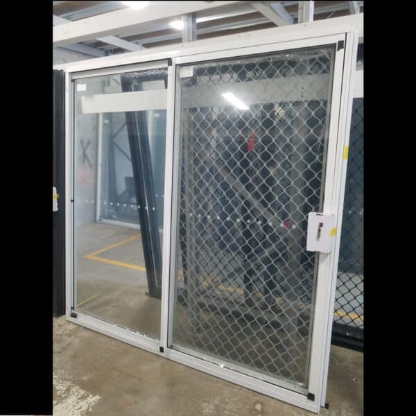 Sliding Door with Diamond Grill Screen – 2100h x 2110w Textura White w/ Clear Glass *NEW* 46221
