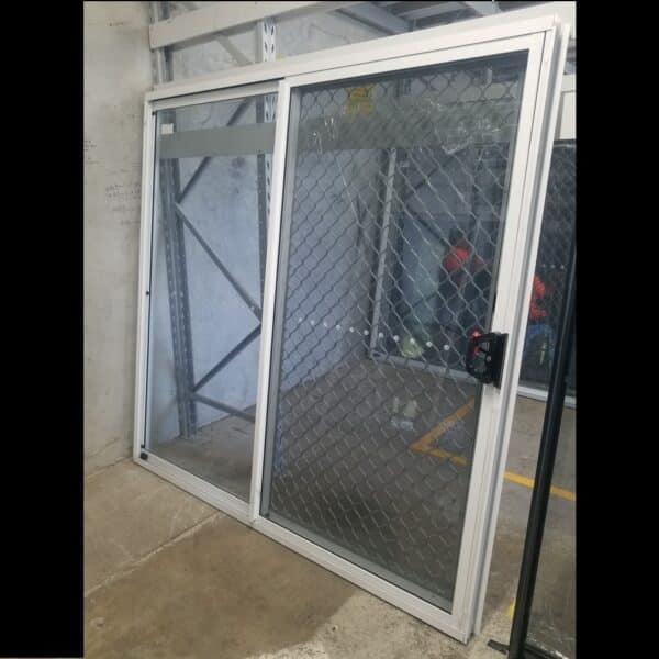 Sliding Door with Diamond Grill Screen – 2100h x 2110w Textura White w/ Tinted Glass *NEW* 46225