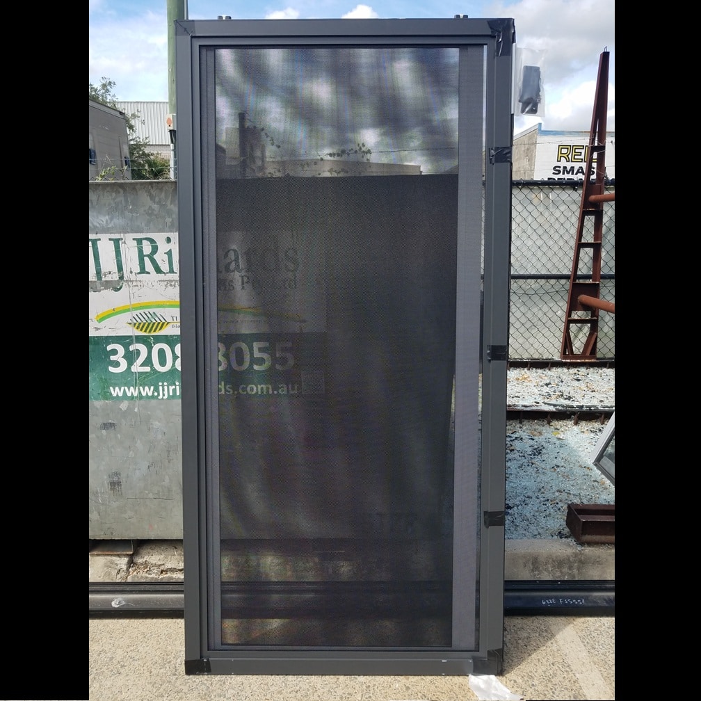 For sale is one stainless steel view screen door measuring 2052mm high by 1022mm wide. The frame is Monument (powdercoated) aluminium. When viewed from the outside, looking in this door would be sliding for right to the left. This is a factory second product and has been priced accordingly. Factory seconds are usually just cancelled orders but may have some minor marks from handling; as such, we recommend inspection prior to purchase.