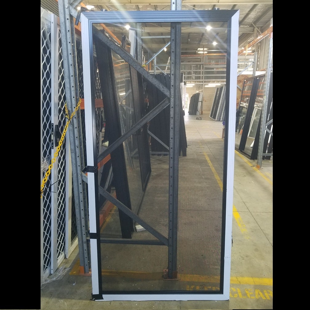 For sale is one stainless steel view screen door measuring 2052mm high by 1032mm wide. The frame is Black (powdercoated) aluminium. When viewed from the outside, looking in this door would be sliding for left to the right. This is a factory second product and has been priced accordingly. Factory seconds are usually just cancelled orders but may have some minor marks from handling; as such, we recommend inspection prior to purchase.