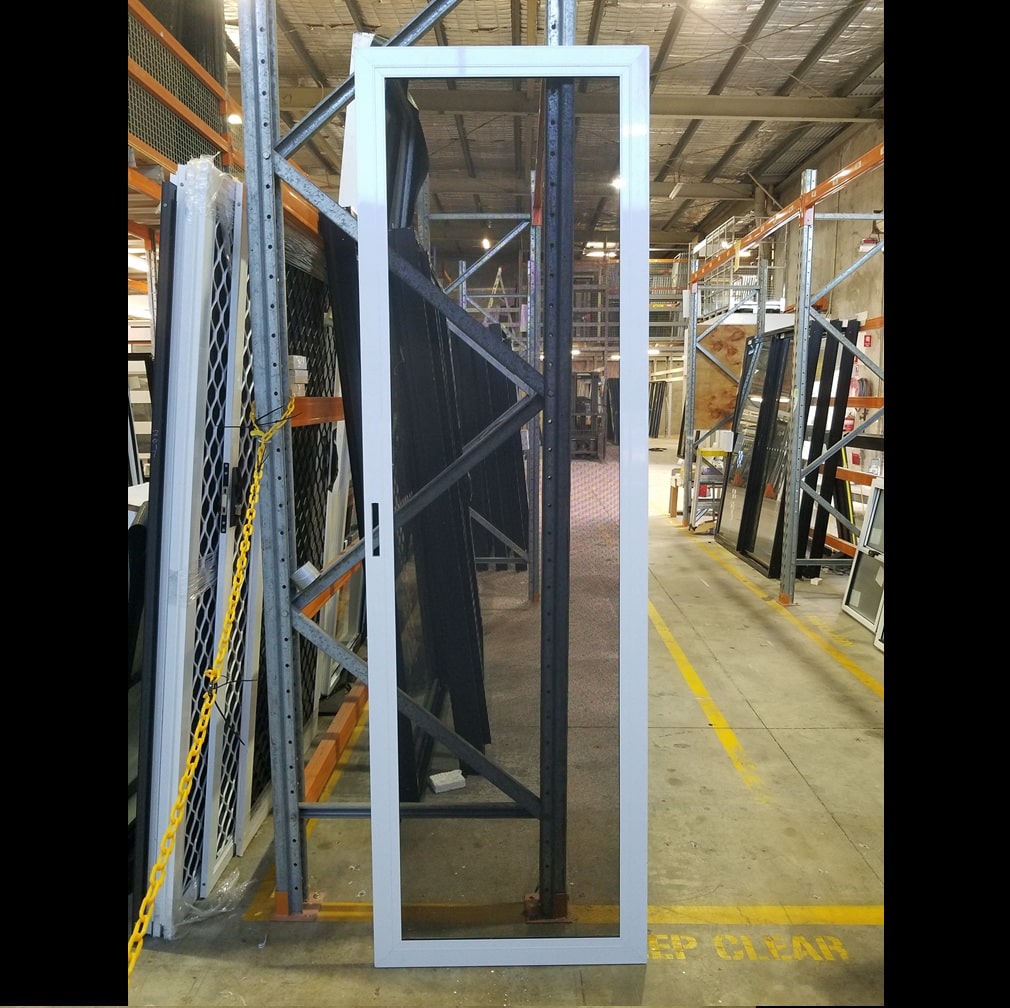For sale is one hinged stainless steel view screen door measuring 2345mm high by 722mm wide. The frame is White (powdercoated) aluminium. When viewed from the outside, looking in this door would be hinged on the right and swing open to the interior. This is a factory second product and has been priced accordingly. Factory seconds are usually just cancelled orders but may have some minor marks from handling; as such, we recommend inspection prior to purchase.