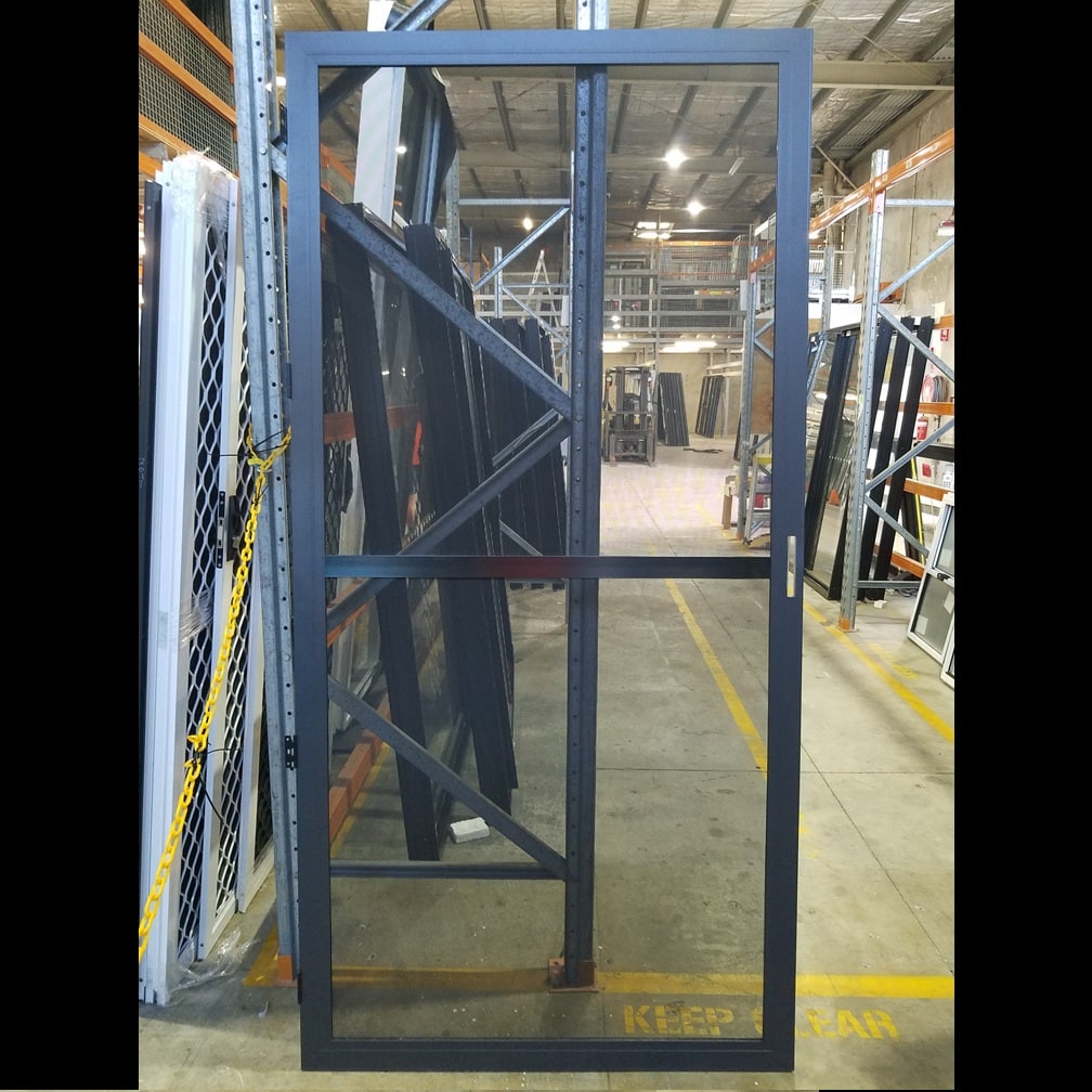 For sale is one hinged stainless steel view screen door measuring 2350mm high by 1150mm wide. The frame is Monument (powdercoated) aluminium. When viewed from the outside, looking in this door would be hinged on the left and swing open to the exterior. This is a factory second product and has been priced accordingly. Factory seconds are usually just cancelled orders but may have some minor marks from handling; as such, we recommend inspection prior to purchase.